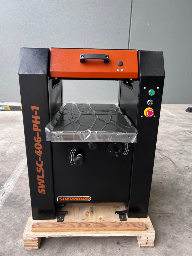 The Sherwood 16in Euro Style Thicknesser has a hinged lid providing easy access to the cutterhead for insert rotation or changes. A cutoff switch ensures that the machine cannot be started with the lid open.