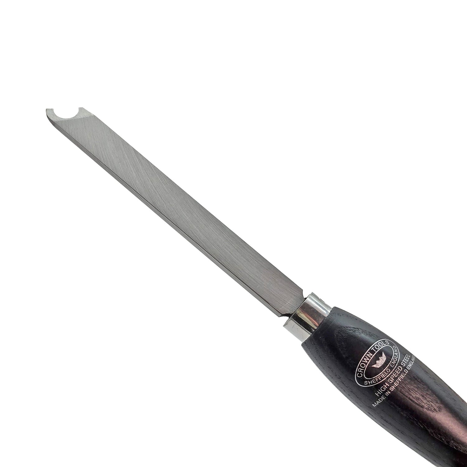 Crown Captive Ring Tool - Cryogenic Steel. These tools are made specifically for producing rings that are captured by the work piece. Unlike most other ranges, the Crown chisels feature a double bevel which results in only one tool being necessary to complete the ring by allowing the user to cut in from both the left and right-hand side. These tools will remain sharp during long periods of demanding professional use. They are finely polished inside and the bevel is carefully ground.