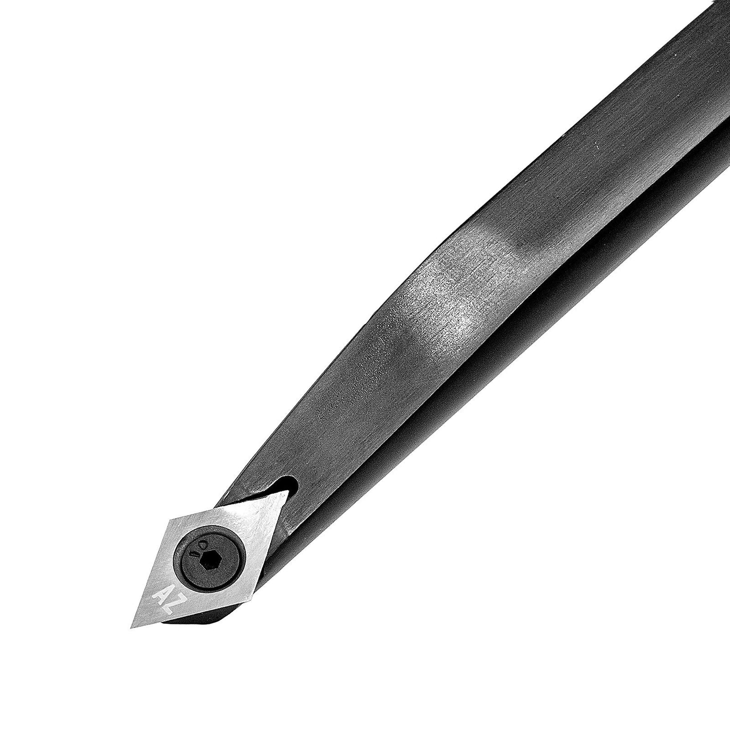 This high grade USA made solid tungsten carbide cutter is made from the best Nano Particle Carbide, and is hardened to an almost unreal 93 HRC, assuring it will keep an ultra-sharp edge for a very long time. Once the tip finally does become dull you simply rotate it to a fresh edge, and keep on going. The blade edges are slightly rounded to allow controlled shear cuts when desired. The acutely angled Diamond tip has 15mm long cutting edges.