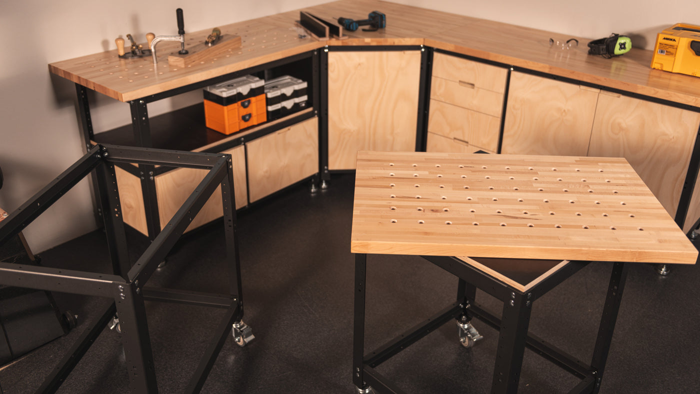 - Locate the position of the top on the frame. You can have an even overhang on all sides, or you can adjust the overhang to suit your needs. Note- if you are joining a series of benches together using the Threaded Connectors, the overhang will be too much for the provided maple tops. Either trim the end of these tops, or offset for a greater overhang at one end.