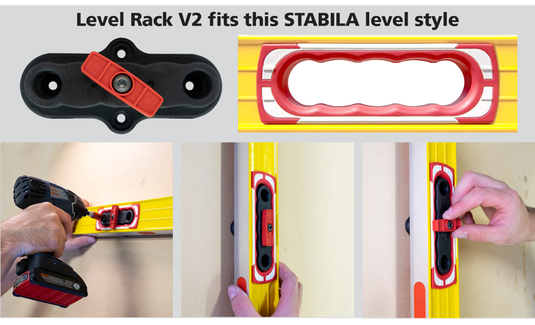 The FastCap Spirit Level Rack Mount V2 was designed to fit the newest line of Stabila levels. You can purchase Spirit Level Rack Mounts for the Stabila original handles here.