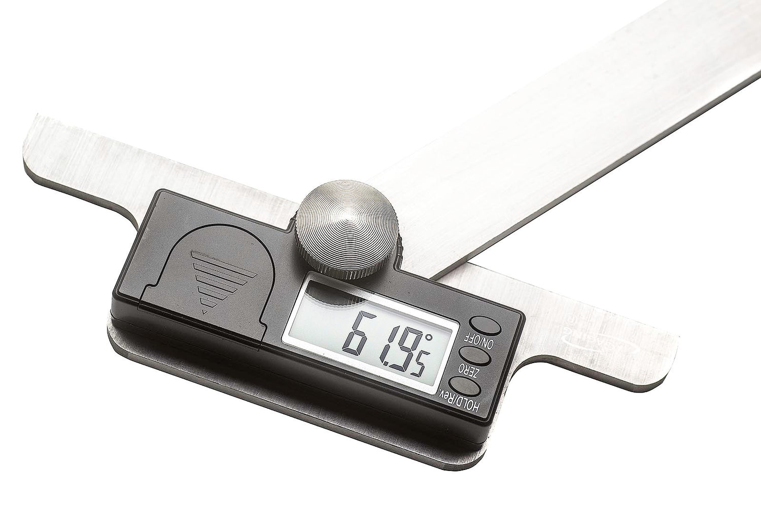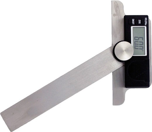 iGaging's Digital T-Bevel Protractor allows you to precisely set and measure angles in 0.05 increments. Made from heavy-duty solid stainless steel arms with a large LCD display, tight locking mechanism and smooth movement. Measure from side to side with a 0-180° range with an accuracy of +/- 0.2°.