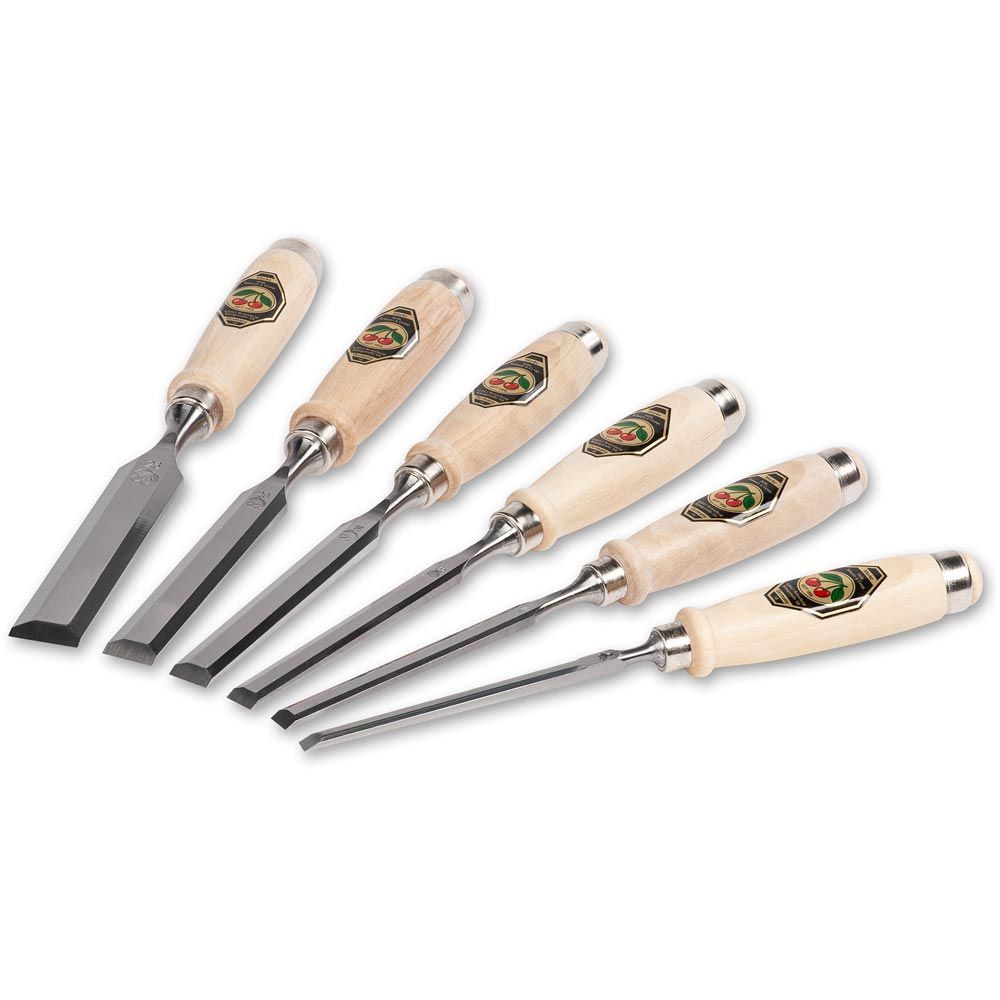 Kirschen Two Cherries Firmer Chisels Bevel Edge Set of 6 with Wooden Handles in Wooden Case