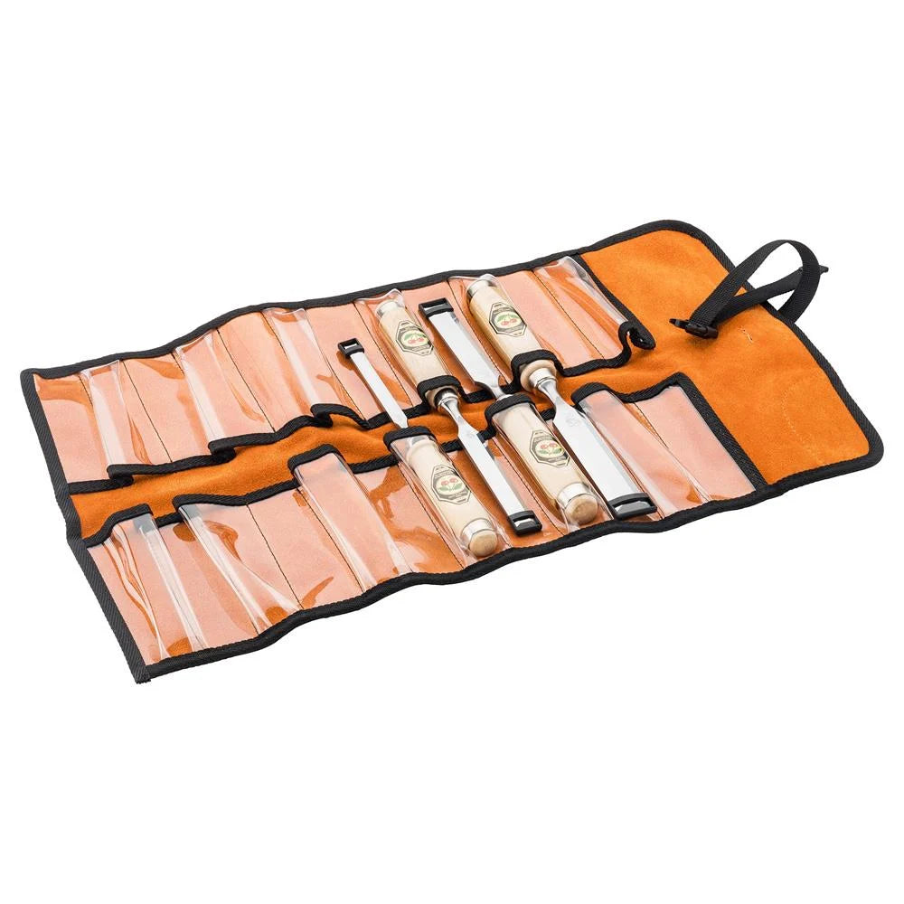 This set contains a selection of the most useful sizes of Kirschen’s popular bevel edge chisels in a convenient suede leather storage roll. Made to last year after year, or even generation after generation.