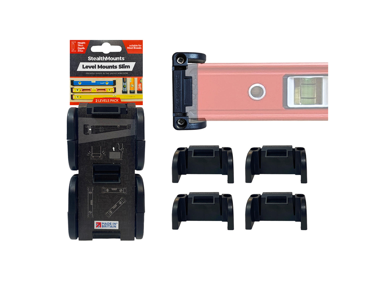 Each pack contains 2 sets of Universal Level Mounts Slim.
